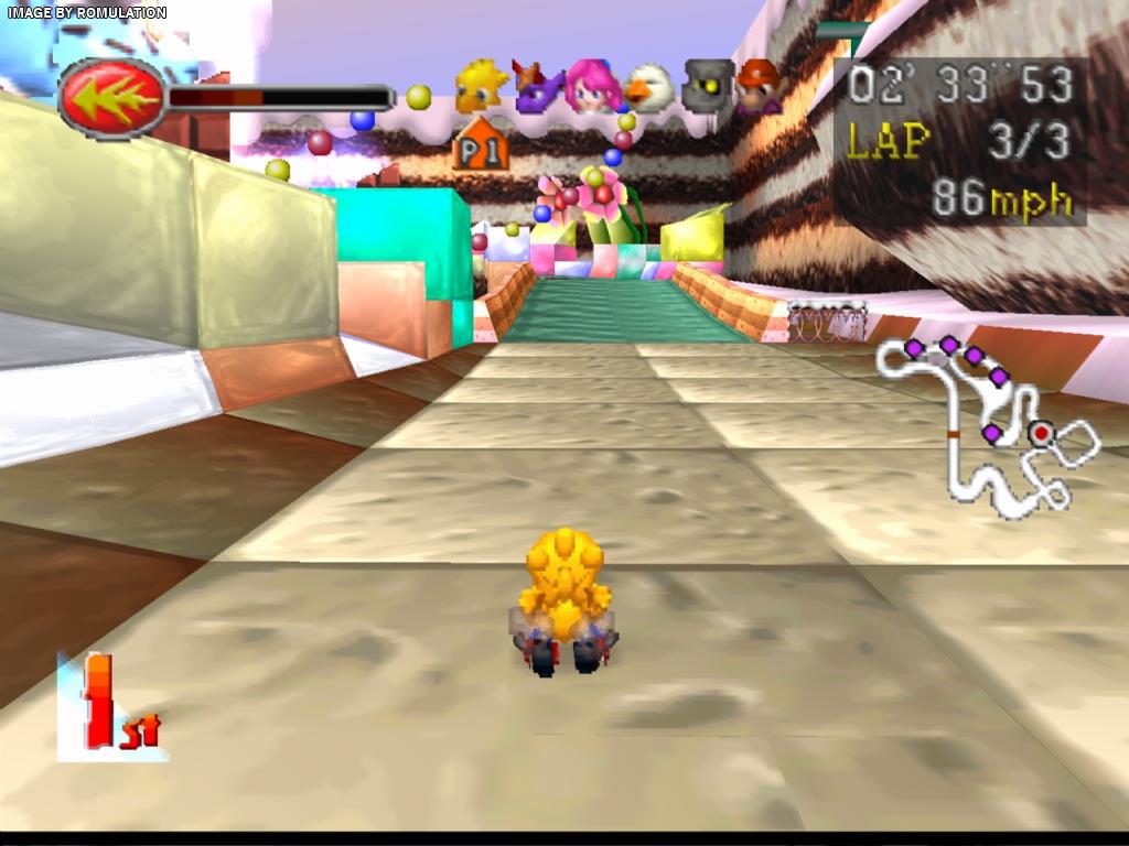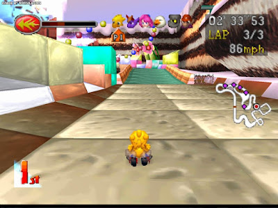 El título es un juego de conducción al estiilo Mario Kart aunque con los