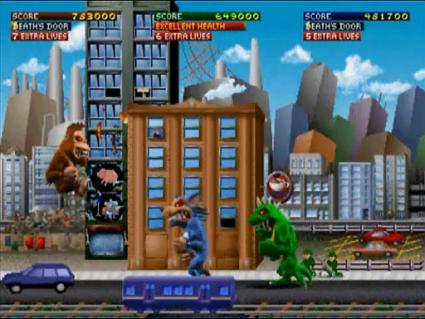 juego son George, un gigantesco gorila similar a King Kong transformado por una vitamina experimental, Ralph, un hombre lobo gigante transformado por un aditivo alimentario, y Lizzie, una Lagartija similar a Godzilla
